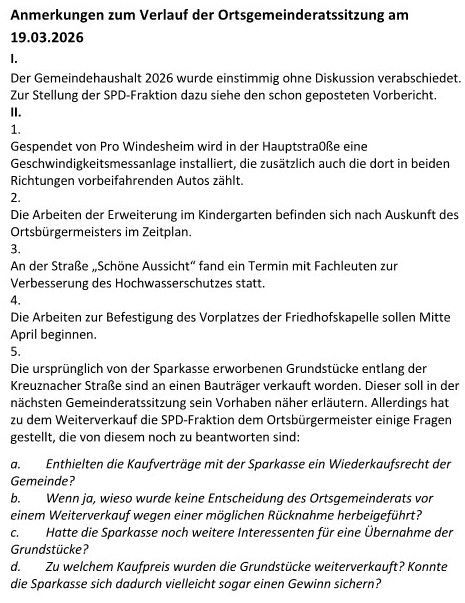Anmerkungen zur Sitzung des Ortsgemeinderats Windesheim am 06.10.2025 um 19 Uhr im Rathaussaal