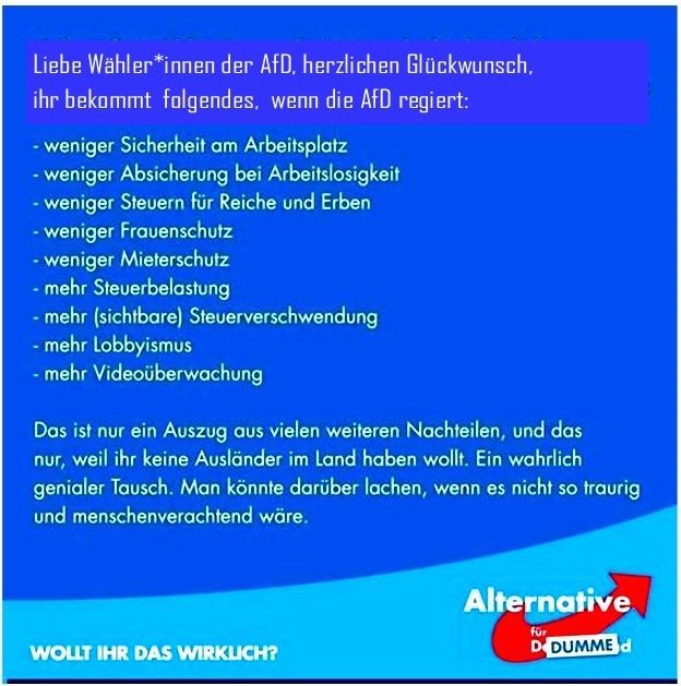 Julia Klöckner „packt“ bei Bad Kreuznacher Tafel „“ und sagt tatsächlich: „Die Arbeit der Tafeln ist mehr als systemrelevant. Sie ist für viele Menschen unerlässlich." Dieser Satz wäre erträglich, käme er nicht von einer der Hauptverantwortlichen für diesen traurigen Zustand. Ob als Ministerin, als Abgeordnete oder als Mitglied im CDU-Parteivorstand - Frau Klöckner war immer vorne dabei, wenn es darum ging, die Einkommen, Renten und Sozialleistungen kleinzuhalten. Ob Mindestlohn oder Grundsicherung im Alter - Frau Klöckner stand immer auf der Bremse. Die von der CDU gewollten Veränderungen beim Bürgergeld werden den Andrang bei der Tafel ebenfalls vergrößern. Vor der Leistung der ehrenamtlichen Helferinnen und Helfer der Tafel muss man großen Respekt haben. Sie verdient wirklich Anerkennung. Schade nur, dass Frau Klöckner hier eine Bühne für ihre Politik der Doppelmoral findet.